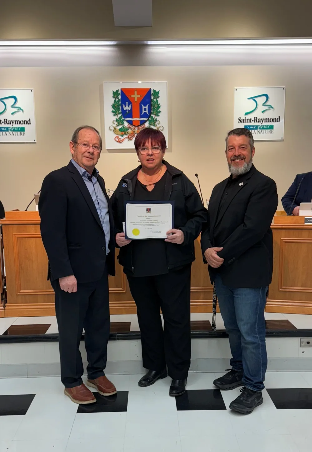 La Ville de Saint-Raymond est fière de rendre hommage à Mme Chantal Paquet pour son dévouement, sa disponibilité et son implication au sein du comité du hockey mineur et du Tournoi provincial de hockey mineur de Saint-Raymond. Cette année, et pour une 20e édition consécutive à titre de présidente, Mme Paquet a mené de main de maitre l'organisation du Tournoi.