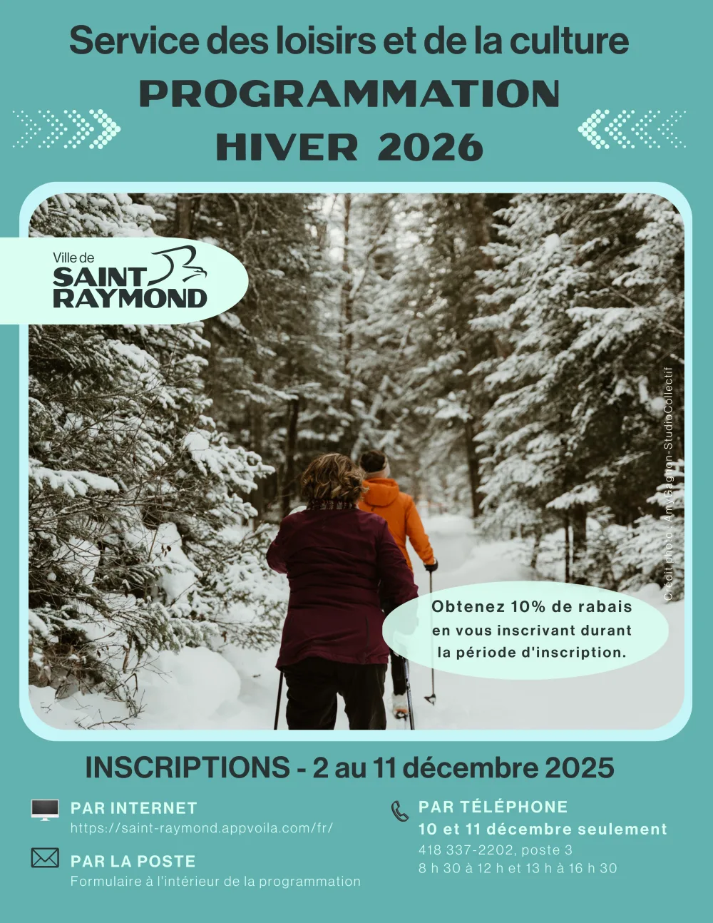 La période des inscriptions aux activités de la session hiver 2026 proposée par le Service des loisirs et de la culture se déroulera du 2 au 11 décembre 2025.
