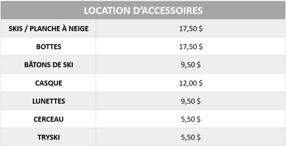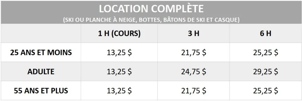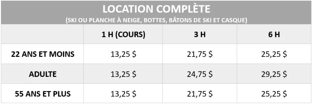 Vous voulez vous initier ou renouer avec les sports de glisse? Notre équipe s'occupera de vous pour faire la location d'équipement de ski ou de planche à neige adapté à votre niveau. Lorsque les préposés auront finalisé l'ajustement parfait, vous partirez en toute confiance pour vos premières descentes.